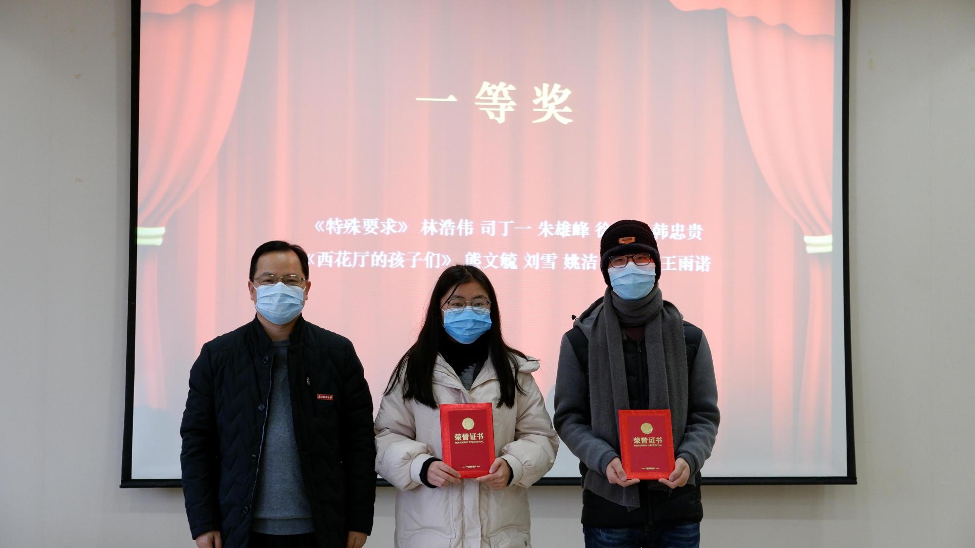 1月5日,校“清风宣讲团”清廉主题宣讲暨“周总理家规”第四届清廉主题剧本征集活动颁奖仪式在1号楼举行,校党委委员、宣传部部长楼胆群出席。我院学子共有12支队伍分获一等奖、二等奖、三等奖及优秀奖(总奖项数为20项),其中我院20级学子林浩伟团队、熊文毓团队的作品《特殊要求》《西花厅的孩子们》包揽一等奖。
