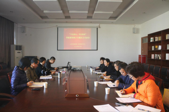 2019年12月10日上午,我院领导班子“不忘初心、牢记使命”主题教育专题民主生活会在学院楼404召开,副校长王奎泉和校督导组全程参加并指导会议。学院党员领导班子成员参加会议,副院长姚红、付琼,学院教师代表王文奇列席会议。会议由党委书记高燕主持。