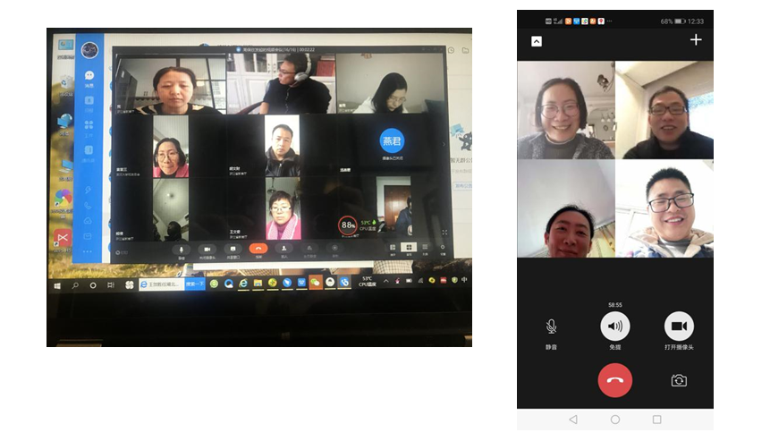 在教学视频会议中,参会者围绕特殊性情况下,人文学院的三类课程——理论课、大类课、实训课——如何开展网络教学展开深入交流和细致的讨论,从网络平台使用到网络教学方式,或借助雨课堂、超星、钉钉等等,与会者各自发表了自己的看法。有上过网络课的任课老师,还分享了自己网络教学的经验。