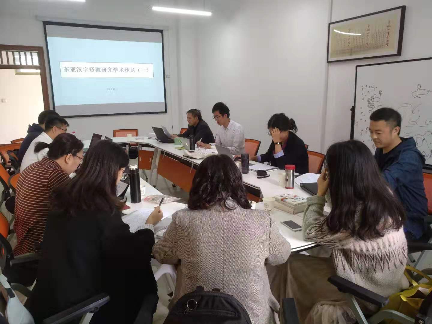 2019年11月5日全天,东亚汉字资源研究中心在7-403举行首次学术沙龙。此次沙龙主题为“汉字域外传播史(1)”,由中心主任何华珍教授主持,刘亚辉、王泉、铁徽、孙伟、徐键、苏浩等老师以及汉语言文字学相关研究生参加,就汉字在日本、朝鲜半岛、越南和西方的传播史略及研究材料做了梳理和深入讨论。