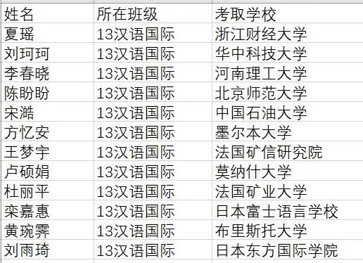近几年来,汉语国际教育专业就业呈现高数量、高质量的特点,一次就业率均高于94%,年终就业率为100%,且就业质量较高,1/3学生考研或出国。多人在美国哥伦比亚大学、美国东北大学、美国罗格斯大学、加拿大西安大略大学、英国格拉斯哥大学、英国诺丁汉大学、英国莱斯特大学、法国雷恩高等商学院、法国IPAG高等商学院、澳大利亚莫纳什大学、澳大利亚墨尔本大学、香港城市大学、香港理工大学、复旦大学、北京语言大学、华中师范大学、西南政法大学等高校进一步深造。