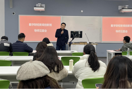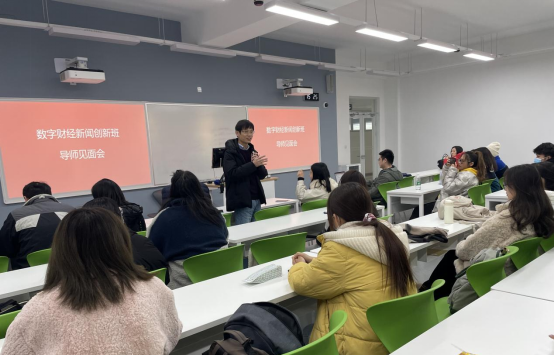 在A108教室举办2021级数字财经新闻创新班学生、导师见面会。本次见面会由创新班执行人王文奇主持,h视频