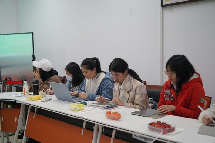 任老师的分享涉及了临安人口规模、职业分工、衣食住行、艺术文学等多个方面,让同学们得以在文字中窥见这个大都会的富庶与繁华,也了解到很多有趣的内容:因为南宋都城的临时性,这里的宫殿并不豪华,户口本和人口统计制度在这时就已经相对成熟,香水和睫毛膏并非现代美妆产品,男子并非十几岁就早早成婚…。这些细节生动地还原了南宋百姓的日常生活,也让同学们感到兴味十足。除了文字上的展示,任老师还通过形象生动的生活图来帮助同学们了解南宋生活细节,此间,任老师极力推荐浙江美术馆的画展《盛世修典》,她表示身处其中能够感受到审美上的震撼。