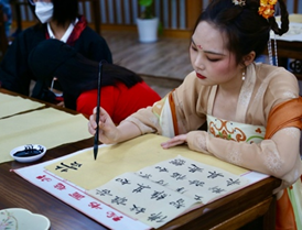 学子外,还有吴智斌、史婷婷、刘华婷、苏浩等老师积极参与,也吸引了国际学院、外国语学院等师生参与,其中包括来自俄罗斯、哈萨克斯坦、乌兹别克斯坦、日本、赞比亚等国家的留学生和外教。之所以将“品味汉字之美”与杭州亚运会结合,是因为汉字这个重要的中国元素在语音、阅读、书写方面都体现着艺术之美,而杭州亚运会与汉字一样充满着生机与活力,通过“说汉语、阅汉籍、着汉服、写汉字”这样的过程,中外师生感受汉字之美,为积极传播中国文化积蓄动力。