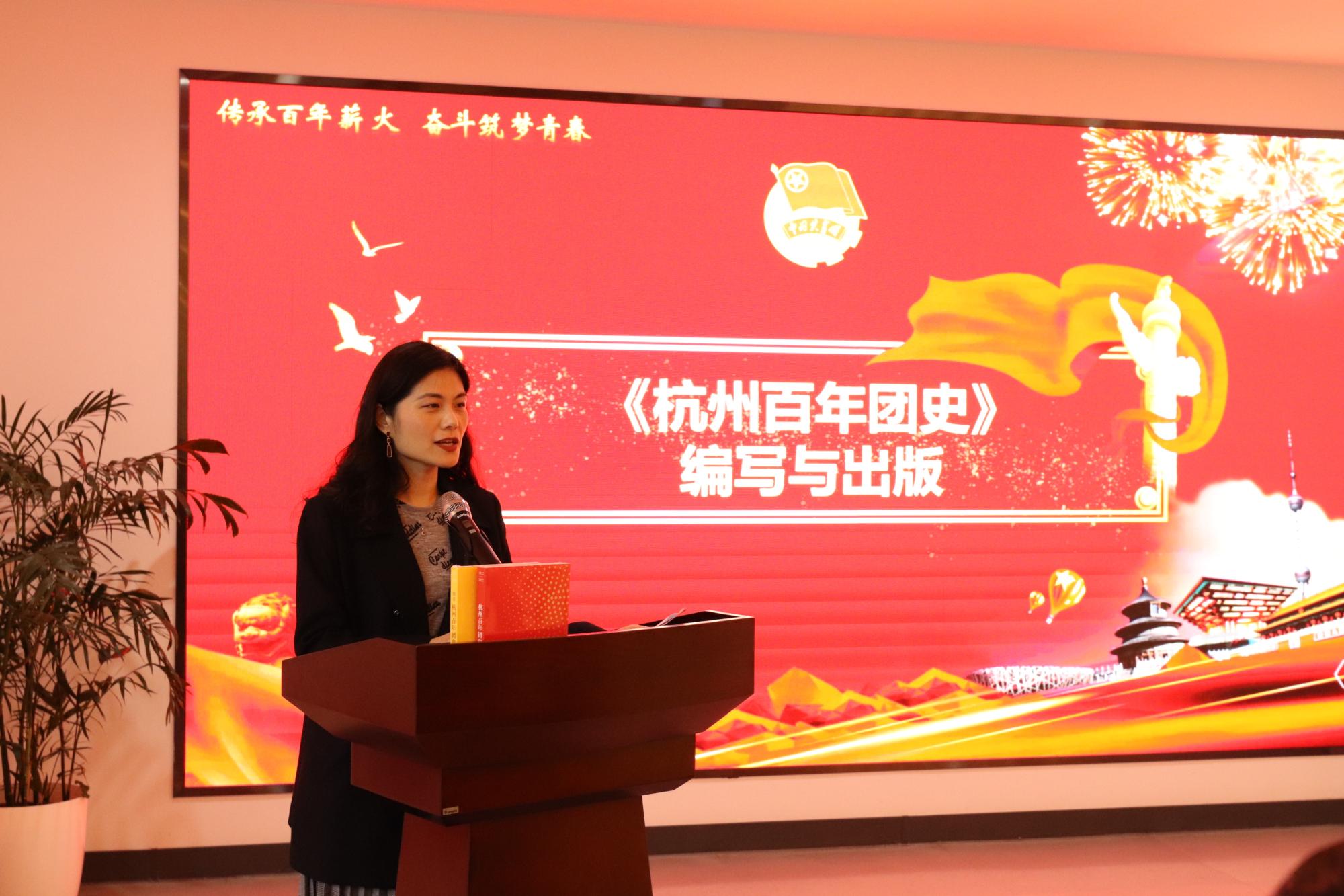 杭州市团校校长沈在蓉致辞并介绍《杭州百年团史》编写及出版情况