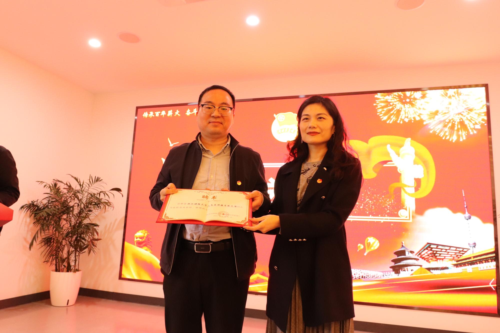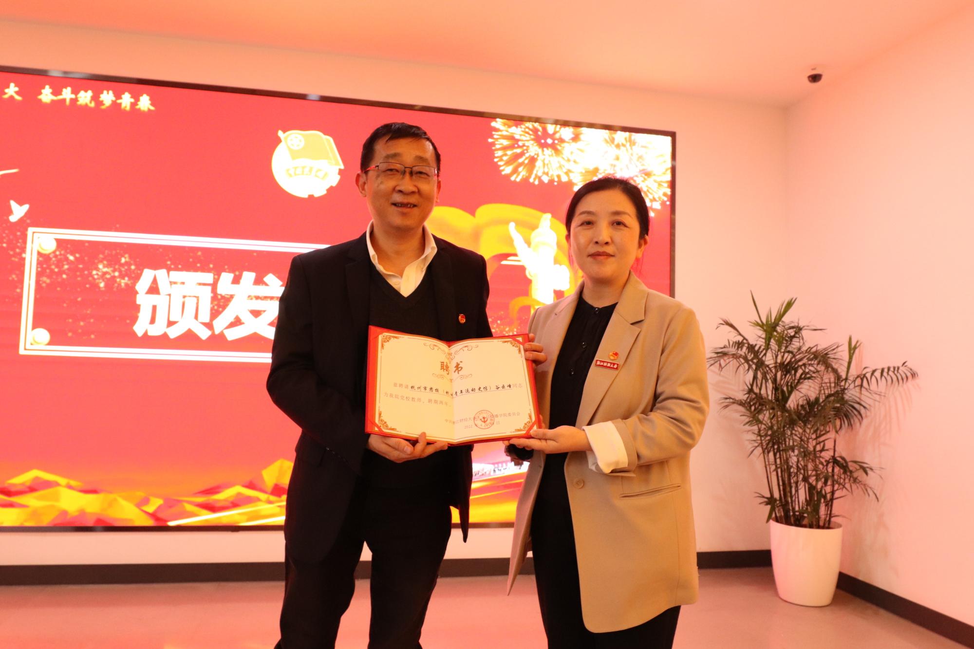 向杭州市团校副教授谷云峰颁发党校教师聘书