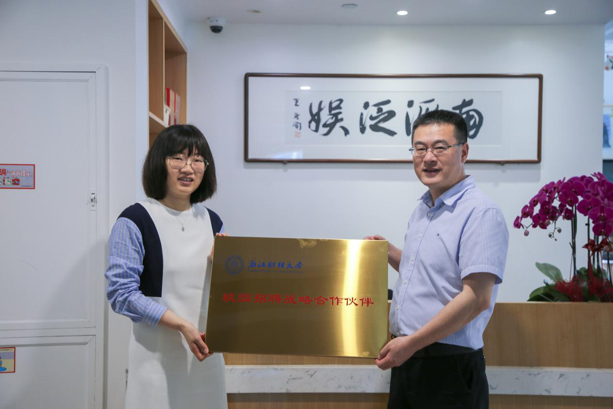 座谈会上,徐晓东代表学校为杭州量子泛娱影视文化传媒股份有限公司、杭州瑞望电子商务有限责任公司和信雅达科技股份有限公司授牌,建立校园招聘战略合作伙伴关系和校外实践教育基地。