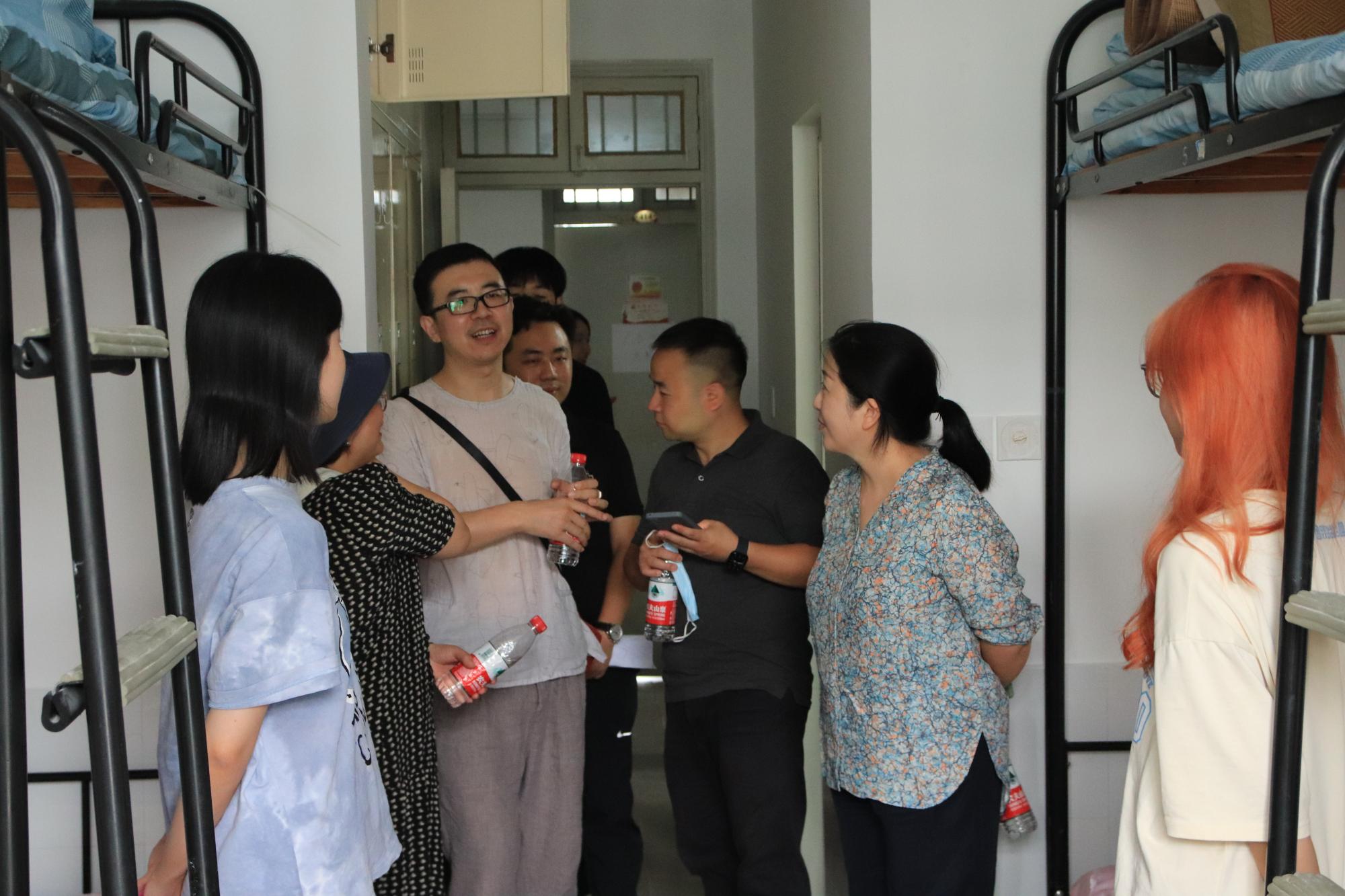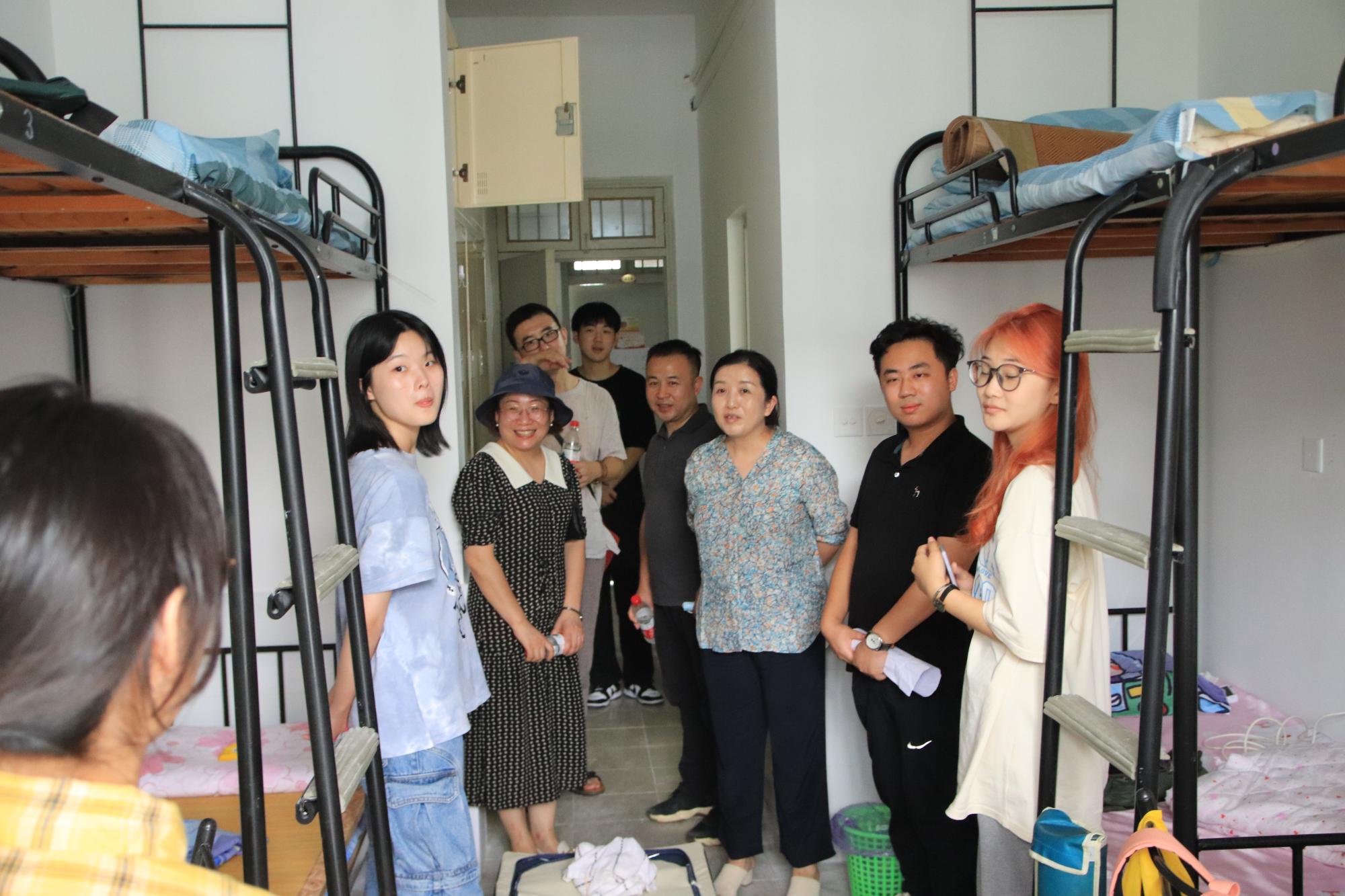 222位新生在现场工作人员的帮助下顺利完成报到,开启崭新的大学之旅。同日下午,我院党委书记高燕老师,副书记袁慧兰老师,两位新生班主任王阿蒙老师、胡文财老师,以及辅导员马羚凯老师来到迎新现场,问候迎新工作人员,随后走访新生寝室,热情聊天互动,拉进了彼此的距离。