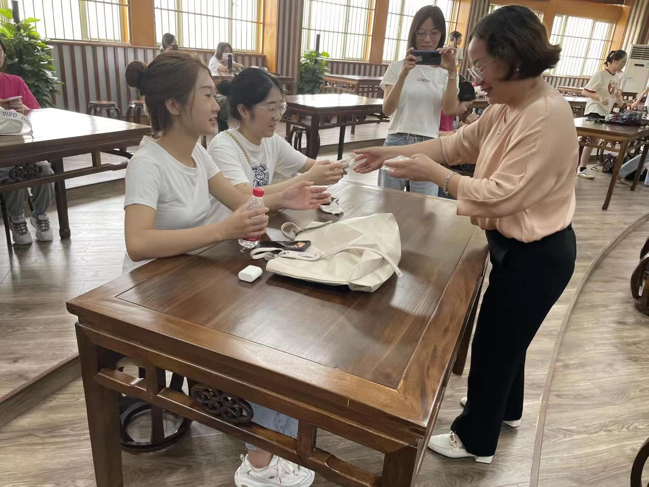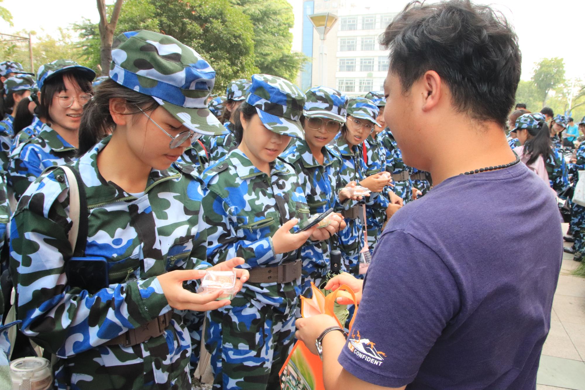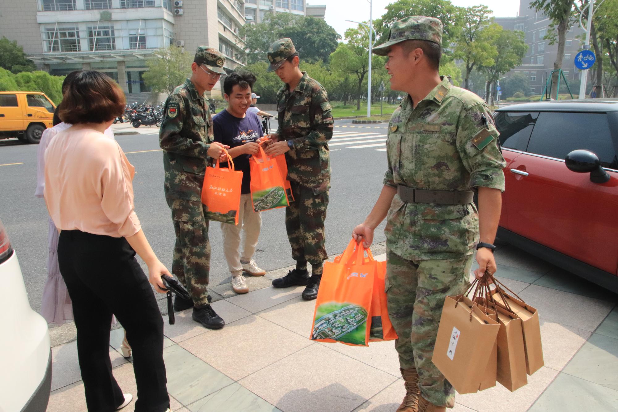在新生教官的协助下,老师们分发了学院精心准备的节日慰问礼品——印有h视频