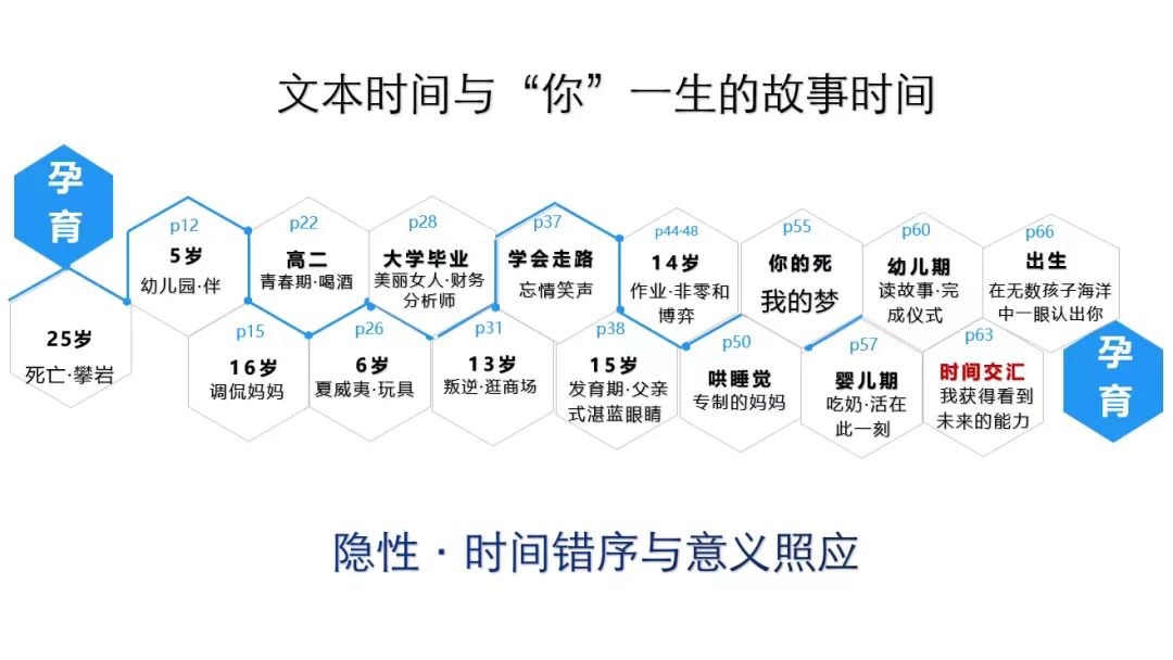 “时间是价值文明的承载方式,对时间的把握决定了思维。”吴智斌老师缓缓引出时间的价值。人类的时间是线性的,线性便是——人类认为,随着时间的过去,年龄的增长,个人的认识便会不断增加,在时间链条上不免会生成因果价值。人类也有循环的时间,如封建王朝的更迭只是统治者姓氏的改变,本质如同原地打转的圆圈。但人类的循环时间是相对的,与人类不同,七肢桶的时间是一个完美的循环。降临地球的七肢桶并没有线性时间的概念,是一种同步并举的目的论选择。故事通过多种叙事手法的使用,巧妙的将习得七肢桶语言后,“我”眼中的时间呈现在我们面前。从孕育开始,又由孕育结束,其中交织的是现实与未来。