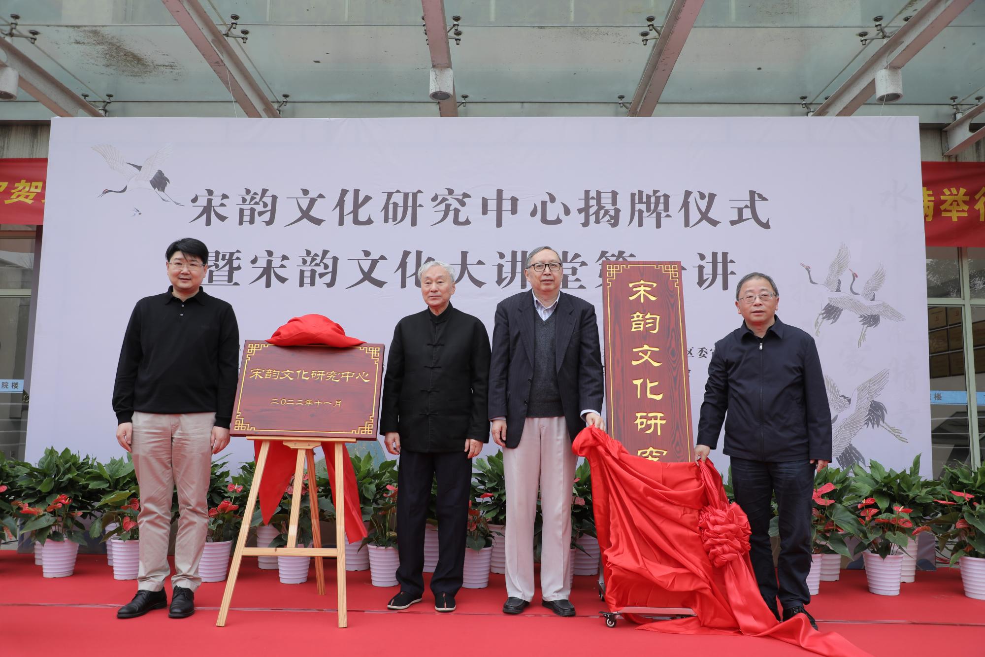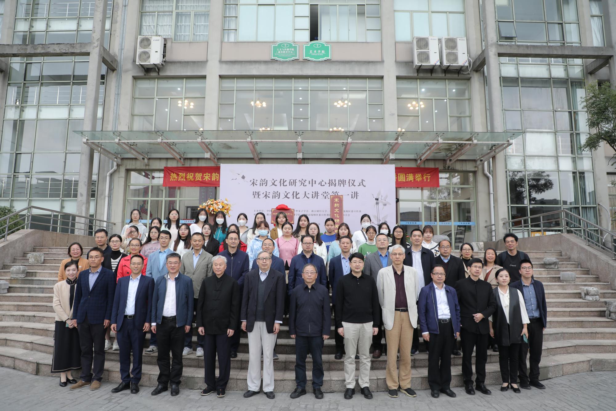 与中共钱塘区委宣传部、钱塘区社科联合作共建“宋韵文化研究中心”。中心揭牌仪式于2022年11月3日在学涯湖畔举行。清华大学国学院院长陈来,华东师范大学终身教授朱杰人,复旦大学特聘教授何俊,浙江工业大学原副书记肖瑞峰,厦门大学人文学院副院长朱人求,校党委副书记、校长钟晓敏,副校长徐晓东,校党委委员、组织部、宣传部、统战部部长楼胆群,钱塘区委常委、宣传部部长李鹏,钱塘区社科联主席贺学兵以及相关职能部门负责人、h视频
